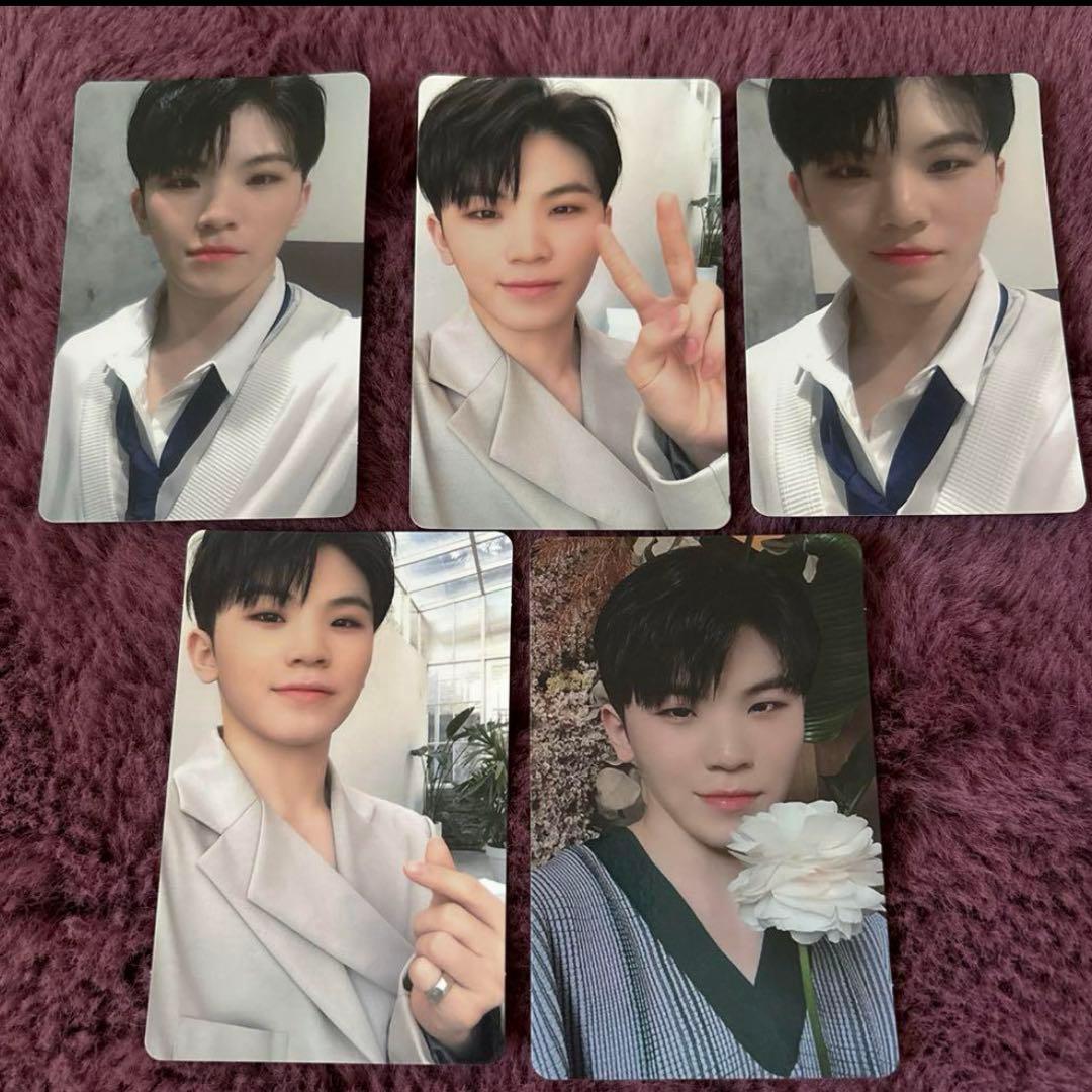 即購入可画像は参考です黒Tシャツにベージュのジャケットを着て、青色の飴を持っていますポラロイド チェキATEEZ Polaroid san種別···シングルカード 1枚