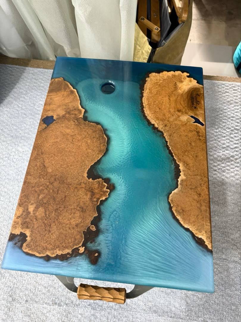 ウォールナット 一枚板 丸\r\r◆兵庫県宍粟市山崎町の材木屋でウォールナットの原木を購入(70万)\r◆原木をサンダーで磨いて加工\r◆一枚板に加工(45万)\r◆掘りごたつの座卓として使用\r◆再加工\r◆天板を半分にカットしてベンチに加工(30万)\r◆残り半分を丸型にカットして加工\r\r\rサイズ(mm)はおおまかに測っています\r※微細な寸法の違いはご了承下さい\r 直径 700mm\r 板の厚さ 60mm\r\r一点物の為世の中に同じ木は存在しません。\r使わないため出品します。\r\r厚さ60mmのウォールナットを円形にカット。\rかなり重たいです。\r\r重量感がありウォールナットの杢(もく)もあり珍しい希少な一枚板です。模様が立体に見えますが平面でツルツルです\r \r7枚目の写真は別出品で対比用に写しています。\r説明文は当方の私見で出来る限り目に見える欠点等など説明しておりますが見落とすこともあるかと思います。又、感じ方に個人差がありますので気にされる方はご購入前にご質問下さい。素人検品ですので多少の誤差や擦れや傷、汚れ等はご了承願います。写真に無いキズや割れなどある場合がありますが、返品やキャンセル、クレーム等は受け付けておりません。無垢材ですので、使用中にヒビや割れや反りが発生することがあります。無垢材の特徴をよくご納得された上でご購入ください。光の加減やモニターによって見え方が異なる場合があります。\r加工後未使用タバコは吸いません。\r\rウォールナット\r一枚板\r天然\r無垢材\r1点物\r自然素材\rアイアン\r杢(もく\rテーブル\rDIY\r天板\r座卓\rテレビボード\r\r天板の形状...円型\r天板の素材...木