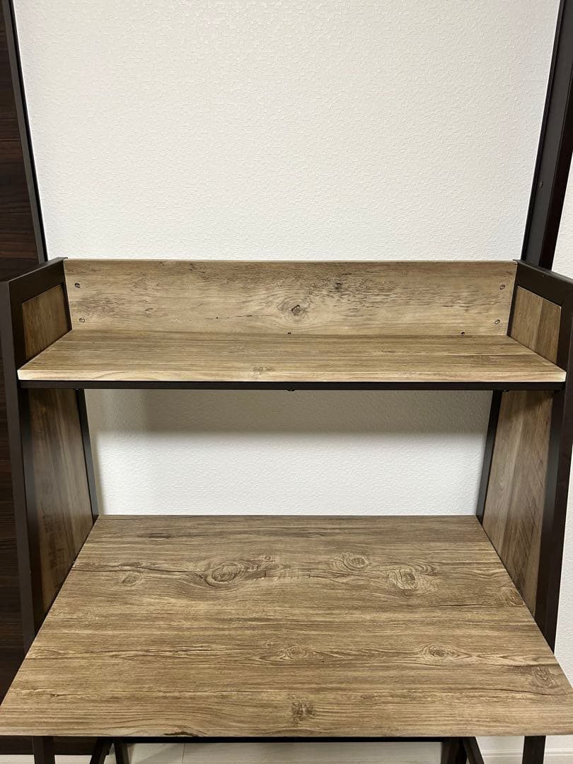 素人採寸です幅 約84センチ 奥行 約44センチ(扉の取手を含まず)高さ 約108センチです。家の配置換えに伴い出品いたします。遠目で見ると普通に綺麗な家具にも見えますが中古で全体的にところどころ線キズ、打ち傷等ありますのでお写真をご確認ください。前後左右から撮影しましたが写真に写りきらないものも出てくるかもしれませんのでそのところはご容赦ください。引き出しもアクは少ししかありませんが汚れとシミはあります(簡易清掃だけしております)たのメル便を使います。なので250サイズ送料8600円込みでこの値段となります(3 辺合計236センチなので大丈夫と考えていますがもしも次のサイズになると送料が12000円になってしまいますので、その時は一旦キャンセルさせていただきます)下段はランドセルなど大きい物も収納できるので、使い方によっては省スペースの子どもの学習机にしたりなど、引き出しタイプより便利かもしれません。特記すべき留意点と考えられることをお知らせします。①下段棚板が2枚ありますが、ダボが一段分しか見当たらないので、棚は2枚送りますがダボは1枚分です。他のもので代用はできるかと思います②前面土台近くに傷が複数ありますのでお写真でご確認ください③写真を取りましたが、先ほど出品準備をしている時に下段右側扉の取っ手が一部欠けていることに気がつきました。今まで使用していたので、使えますが必要に応じてボンド等で止めても良いかと思います。④右側面上部に長い線キズがあります。⑤裏面に黒マジックで何かの高さの確認と思われるものと、下部に11 9/29 ライティングデスクと書かれてあります。⑥下段扉を止める磁石が片側分しかなく、右側は別のネオジム磁石で代用しております以上が特記事項ですが、細かい見落としがありましたらご容赦ください。どうぞ宜しくお願いします- 色: ブラウン- 素材: 木製- デザイン: 引き出し付きキャビネット- 機能: 折りたたみ式デスク