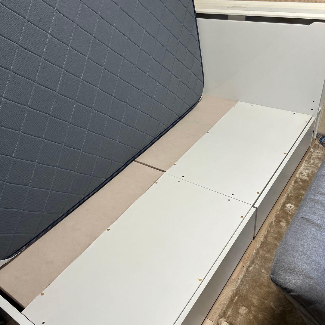 期間限定新春新生活応援セール♪期間限定で送料無料値下げ^ ^他サイトでも出品しております。ご購入の際には必ず在庫確認をよろしくお願い致します!サイズ本 体:幅85×長さ180×高さ35cmマットレス面までの高さ:35cm床下スペース:約14cm敷きパッドサイズ:85×180cmボックスシーツサイズ:85×180cm+マチ25cm重 量:約25kg材質木脚/天然木/2.0mmポケットコイルスプリング(コイル数364)ウレタンフォーム/防音フォーム/フェルト/不織布/ポリエステル100%張地
