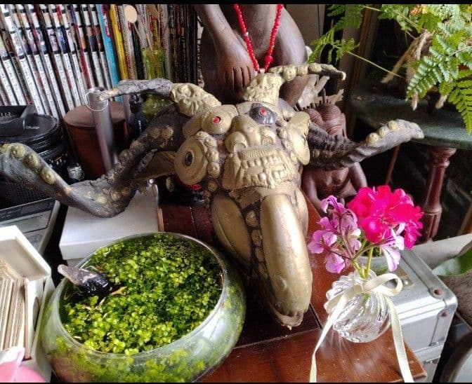- 沖縄旅行で気に入り購入しましたが、この前の雪で玄関より落下して壊れてしまいましたので、同じ物を今回楽天にて購入しました。5年間、外にありましたが色褪せ無く気に入っています。