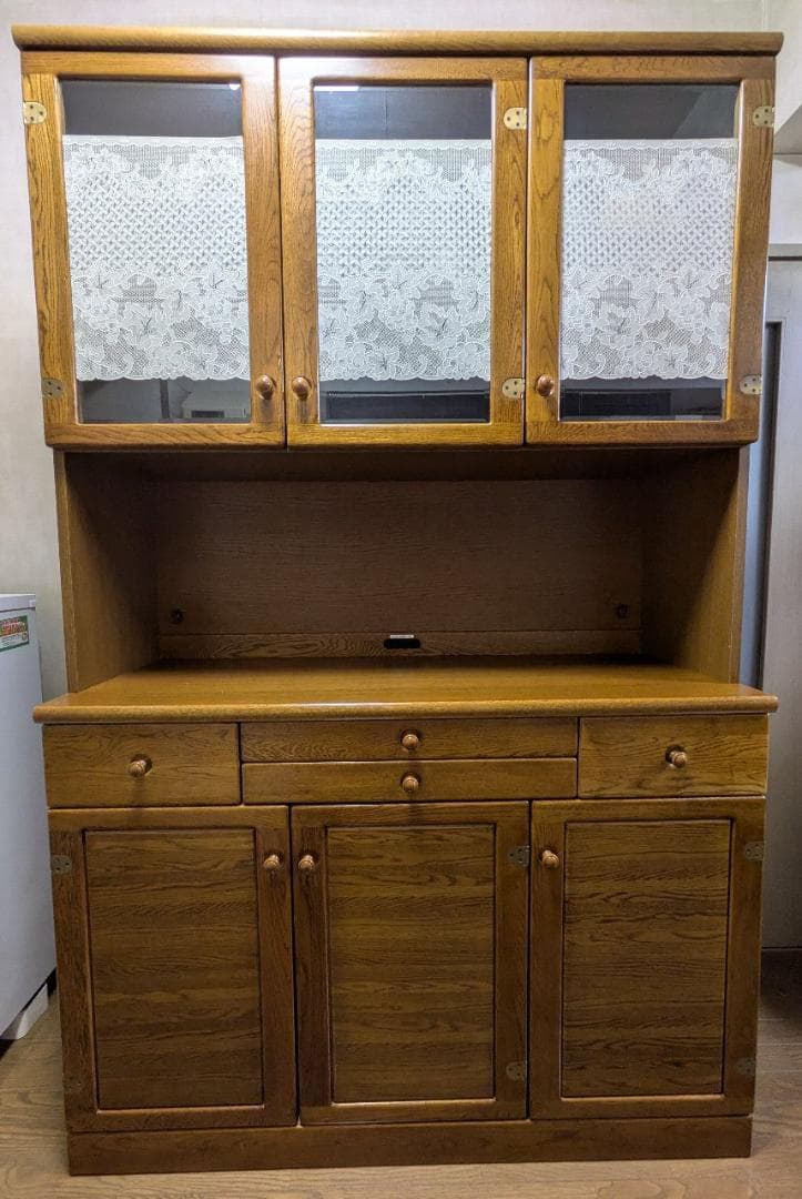 - ホワイトを購入しました。 組み立ては夫がやりましたが、難しいことはないみたいです。 しかしガラス戸周辺の一番目立つ辺りにキズが数ヶ所と、色染み? 目立つ場所なだけにショックです。 100円ショップで白のマーカーを買って塗りましたが、気休め程度の処置でした。 かといって返品も面倒なので(と言うかずっと探してたサイズ感だけあって、早く使いたかったので)取り敢えず使用してます。 上下の棚の扉はバタンと音を立てやすいので、クッションシールなどつけてくれたら良いなと思いました。 その他、レンジの収納と2口コンセントとスライドテーブルについては特に問題なく使えます。