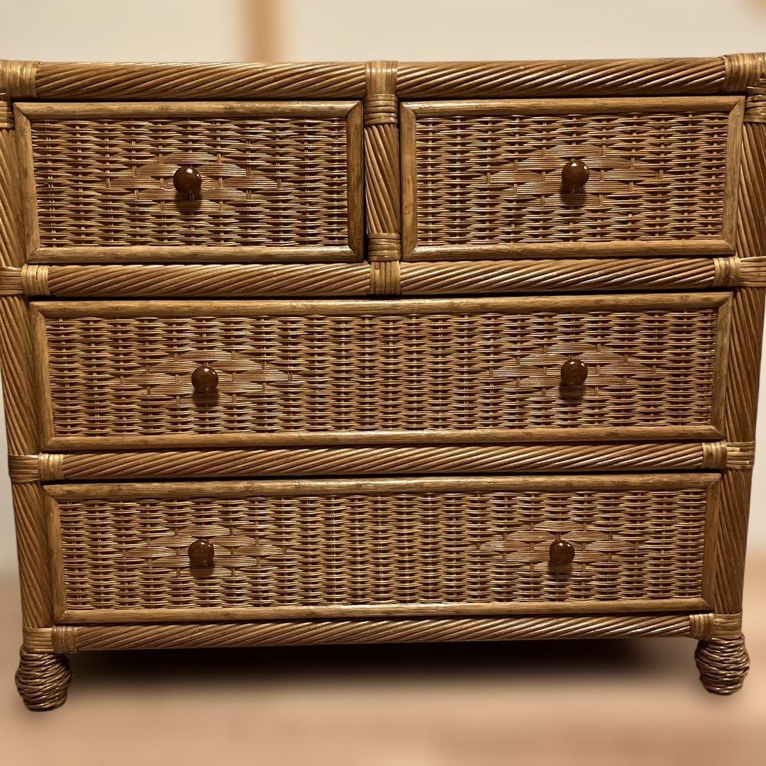 ご覧いただきありがとうございます♪定型文での値下げ交渉は無視させていただきます。Thank you very much for browsing the product. You can buy it immediately. This account only deals with 100% genuine items.【商品情報】ラタン チェスト 3段 キャスター付き 籐使用時に伴う傷や汚れ、多少の劣化はございますがまだまだ問題なく使用いただけます。若干のほつれはございます。完璧を求められる方はお控えください。【サイズ】横幅 約50cm奥行き 約40cm高さ 約88cm 素人計測の為、若干の誤差はご了承下さい。素人検品につき見落としがあるかもしれません ご了承のうえご購入ください。簡易清掃を行い、丁寧に梱包させて頂きます。【梱包/発送】プチプチ、フィルムを巻いてお送りいたします。※万が一商品が入らないなどある場合変更もあります。緩衝材として新聞紙を使うことがあります。匿名配送です。コメントなしでのご購入OKです!ただし説明欄を読んでご納得の上でお願い致します。わからないことなどある場合は質問受け付けます。納得されないうちはご購入はお控えください