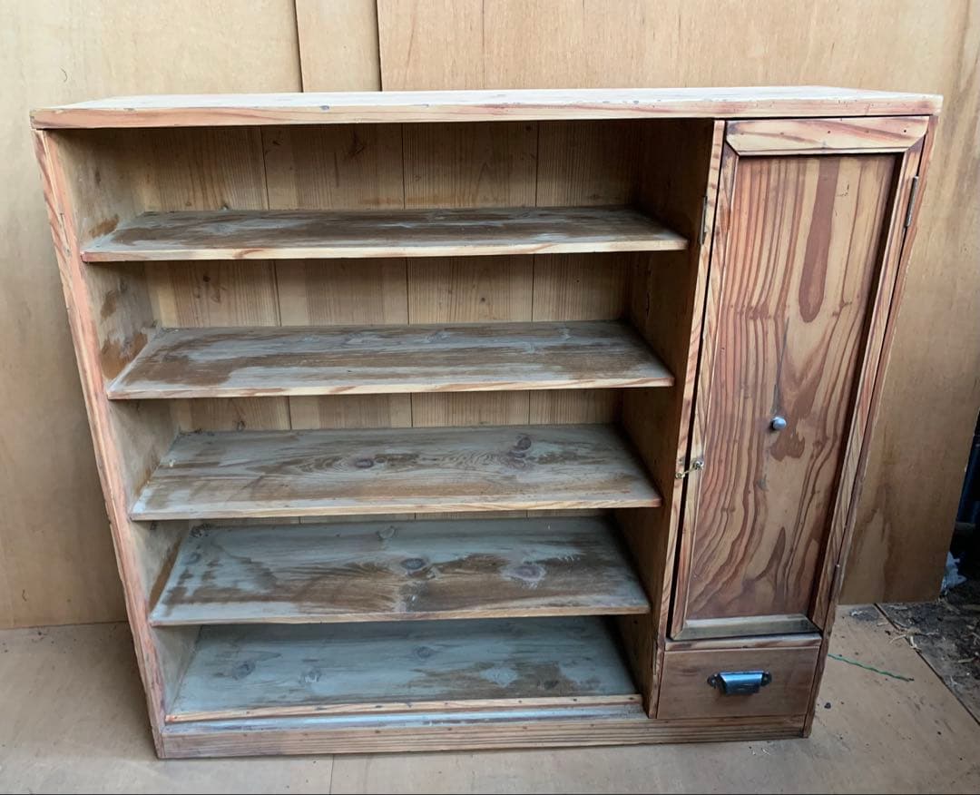 2段のシェルフです。上段はガラスで囲まれておりお気に入りのインテリア雑貨やフィギュアなどを飾るのに最高です。下段は棚板があるので本を置いてもいいですしあえて置かなくてもおしゃれです。状態は写真を参照ください※ライトと本はイメージです。