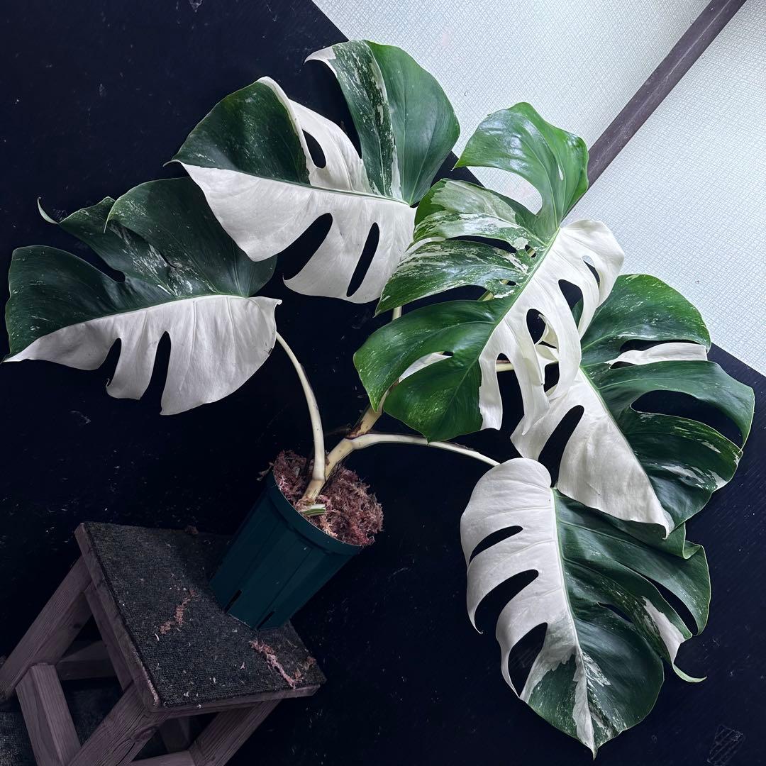 ■品種説明・モンステラ・ボルシギアナ・ホワイトタイガー・白斑の入りが非常に美しく、希少性の高い個体です■個体特徴・全体高さ:約54cm(鉢含む)・葉数多く、1枚ごとの斑入りが非常に上質・霜降り白斑・ベタ白混在の極美個体■管理環境・屋内LED+サーキュレーター管理・水苔仕立てのスリット鉢で発送予定■発送方法・鉢ごと発送/丁寧に梱包しメルカリ便にて・発送前に葉の割れ等あれば事前にご連絡します■ご注意・斑入り植物のため、葉焼けや斑の変化がある場合があります・生き物のため日々状態が変化します・丁寧に管理しておりますが、完璧を求める方はご遠慮ください#モンステラ #モンステラ斑入り #ホワイトタイガー #斑入りモンステラ #観葉植物 #希少植物 #ホワイトタイガー大株 #モンステラホワイトタイガー #インテリアグリーン #斑入り植物